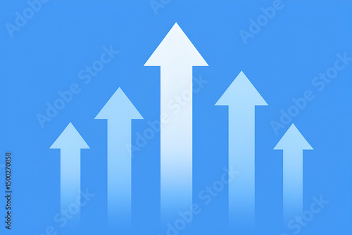 This modern graphic features upward arrows on a blue background, symbolizing growth, progress, and success in business. Ideal for presentations and marketing materials.