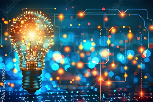 This poster advertises a seminar on electricity and safe work, characterized by blue hues and dynamic electric lights