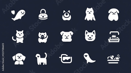This set of icons features solid glyphs of pets, including dogs, cats, fish, stores, and food. They're perfect for use in website design, marketing, logos, apps, templates, and user interfaces.