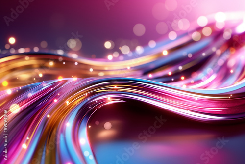 This vibrant and colorful abstract design features flowing waves illuminated by soft lights, creating a mesmerizing and dynamic background suitable for various digital applications