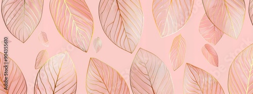 This wallpaper design features gold leaf and natural background. Leaves line arts are used for fabrics, prints and backgrounds.