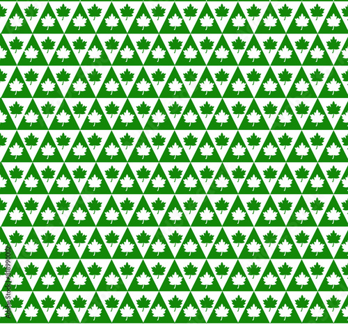 This wallpaper features a harmonious design with white and green triangles, each containing a detailed leaf illustration. The pattern creates a fresh and natural aesthetic, perfect for a serene