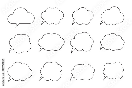 Thought bubble line icon. Speech or think bubble, empty communication cloud. Set of design elements. Expanded stroke.