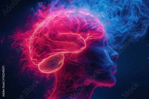Thought process concept. Counteraction of opposing decisions in the brain. Excited man's brain trying to cool down and think rationally and coldly