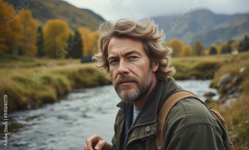 Thoughtful man by serene river