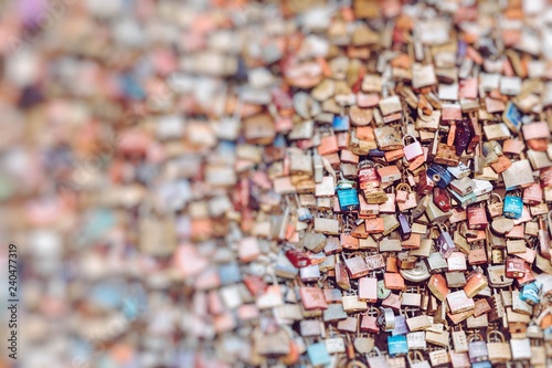 Thousands of love locks which sweethearts lock to the Hohenzollern Bridge to symbolize their love.Selective Focus.