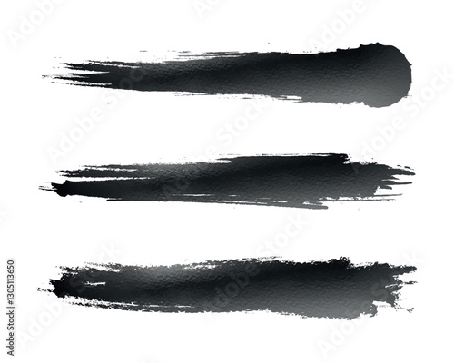 Three artistic black brush strokes on a white background, ideal for design, banners, or creative projects.