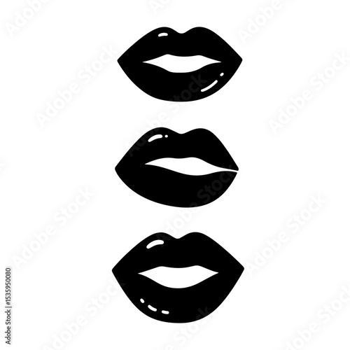 Three Black Lips Vector Illustration Set, Minimalist Style