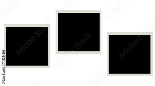 Three black photo frame placeholders for scrapbook layouts, poster mockups, and creative digital designs. Isolated on transparent background