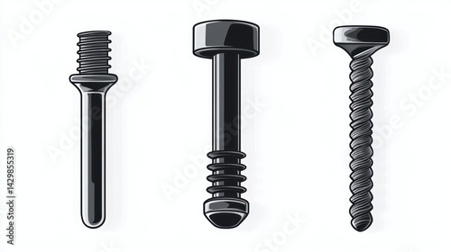 Three black screws isolated on white background; ideal for hardware websites