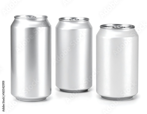 Three blank aluminum soda cans