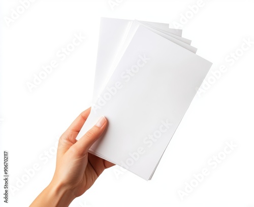 Three blank sheets of paper (tickets, flyers, invitations, coupons, banknotes, etc.) in the hand of a male