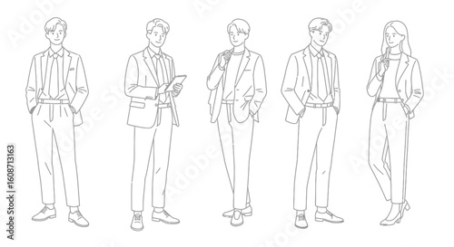 Three Businessmen in Different Poses Full Body Outline Style silhouette