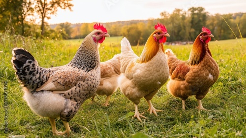Three Chickens in a Meadow