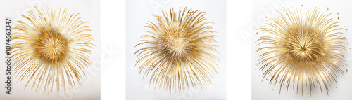 Three circular abstract shapes created using thin, pale gold lines that radiate outward from a central point.