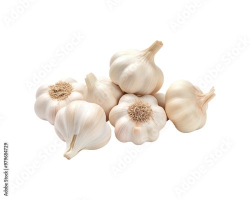 Three cloves of garlic and a whole onion are fresh and flavorful. Suitable for food blogs, cooking magazines, and culinary websites. Generative AI