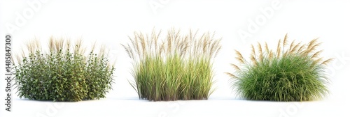 Three clumps of ornamental grasses