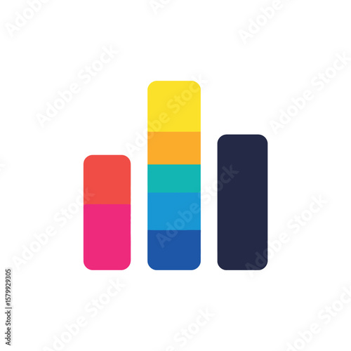 Three Colorful Rounded Rectangles Design, Data Visualization, Modern Art Style