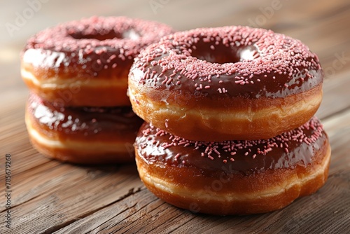 Three delectable chocolate-frosted donuts with red sprinkles, symbolizing indulgence and comfort food