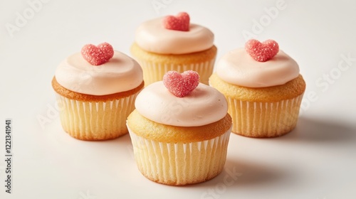 Three delightful cupcakes topped with frosting and fresh raspberries, perfect for a sweet Valentine's Day treat.