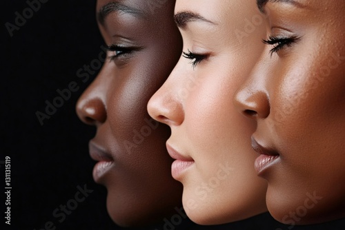 Three diverse women showing off their natural beauty and skin tones