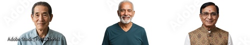 Three Elderly Asian Men Smiling on a Black Background, Each Representing Different Ages and Personalities