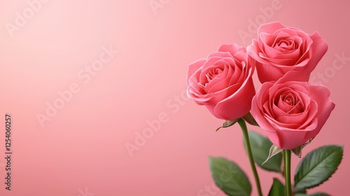 Three Elegant Pink Roses on Soft Blush Background for Decoration