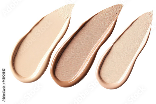Three elegant swatches of foundation in various shades, showcasing smooth texture and versatile color range for beauty applications.