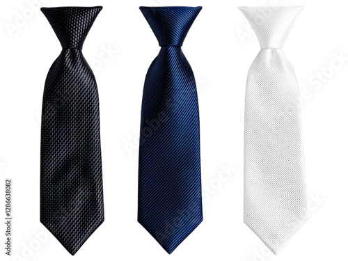 Three elegant ties in black, navy, and white, showcasing a sophisticated style against a clean background.