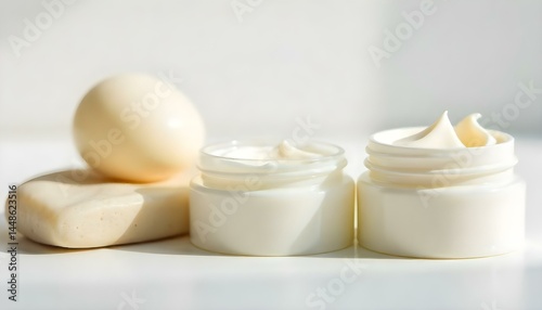 three empty jars for hand cream on white
