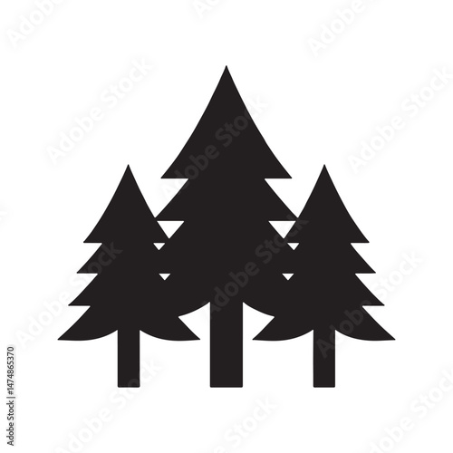 Three Evergreen Trees Silhouette Nature Icon, Forest Symbol, Pine Tree Graphic
