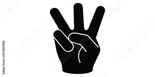 Three Fingers Hand Gesture Simple Black and White Illustration