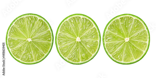 Three Fresh Lime Slices Isolated on Transparent Background – High Resolution Citrus Fruit Cutout