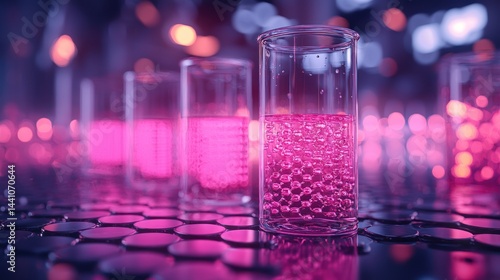 Three glasses filled with pink liquid sit on a dark textured surface.