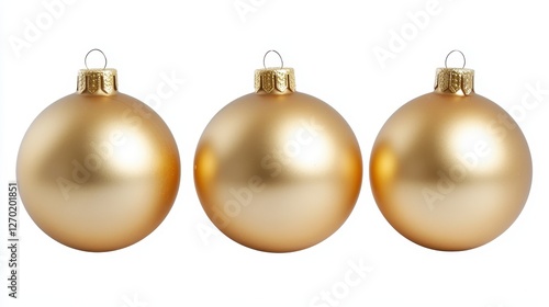 Three Gold Christmas Ornaments on White Background