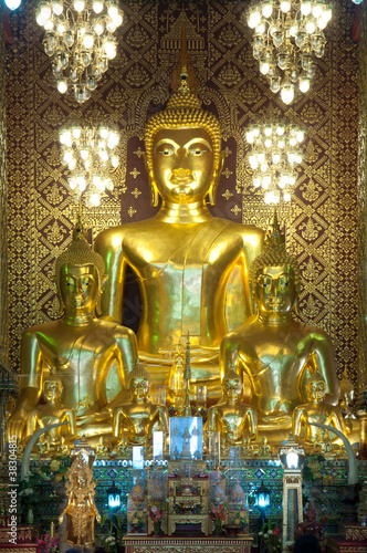 Three golden Buddha statues, Northern, Thailand.
