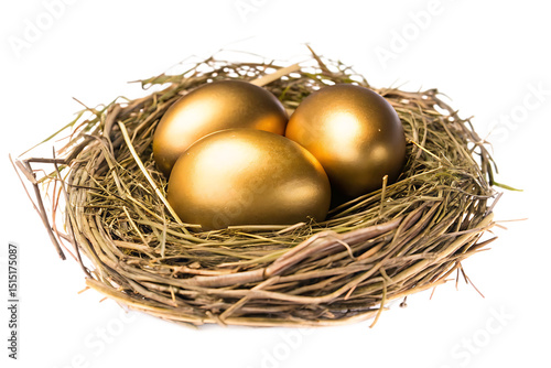 Three golden eggs nest isolated on white background png ai generated isolated on a white background