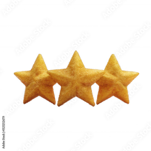 Three golden star-shaped cookies displayed on a white background, perfect for festive occasions or dessert themes.