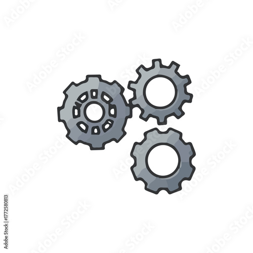 Three gray gears interlocked, illustrating a concept of connection, mechanism, or teamwork on a white background.