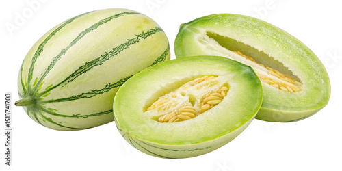 Three Honeydew Melons Composition, Isolated on Transparent Background, Fresh Fruit, Summer Food, Honeydew, Melon, Fruit