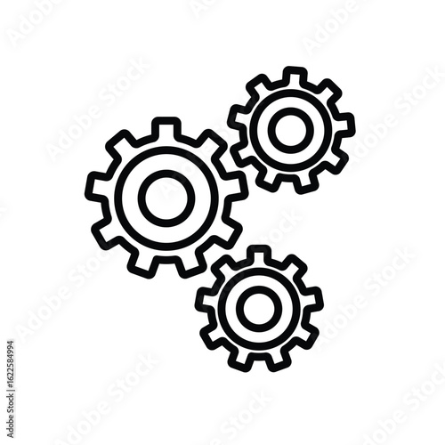 Three Interlocking Gears in Simple Outline Style on White Background