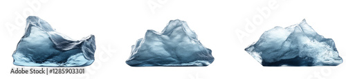 Three jagged icebergs with smooth surfaces on transparent background