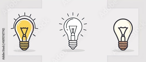 Three light bulbs in various designs, showcasing creativity and innovation against a neutral background