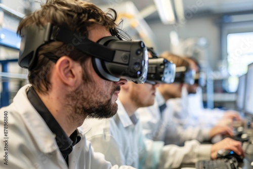 Three Men Wearing Virtual Reality Headsets at Work