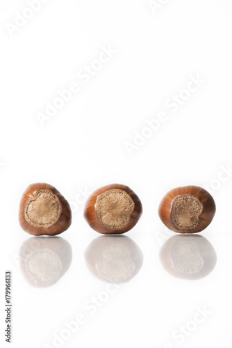three nuts isolated on white studio background