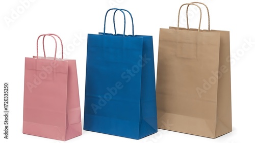 Three paper shopping bags isolated on white background