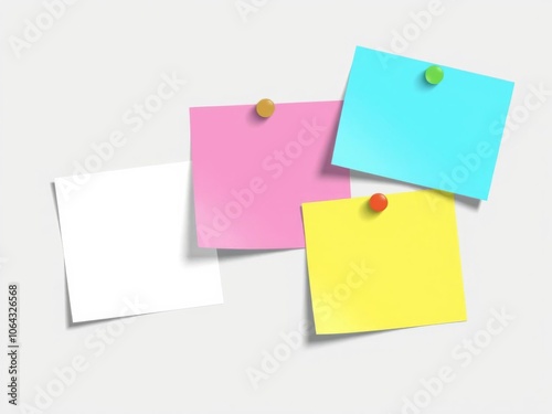 Three pastel colored paper stickers with symbols, sticky, vector, paper