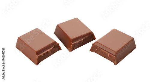 Three pieces of milk chocolate isolated on transparent background for sweet treat