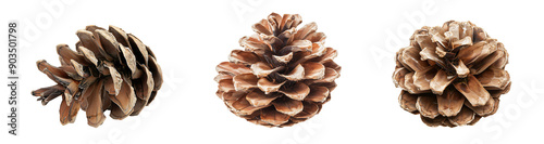 Three Pine Cones Isolated on a White Transparent Background