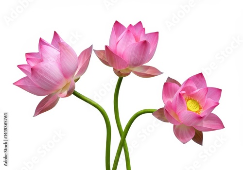 Three Pink Lotus Flowers Elegant Nature Botanical Floral Bloom Spring Summer Beautiful Delicate